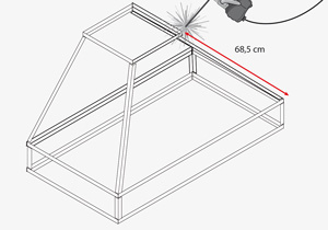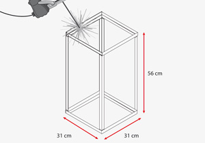 Soldar un marco de 30x30 cm. Ubicar el marco al centro del dintel, es decir a los 50 cm, pero dejando un espacio de 51,5 cm para poner las diagonales que formarán la campana.