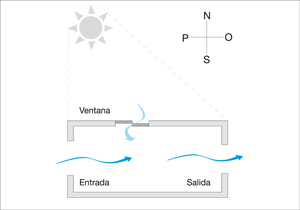 Se debe asegurar al menos de generar “entradas–salidas” de aire en los extremos opuestos, posibilitando así la existencia de una “ventilación cruzada”.