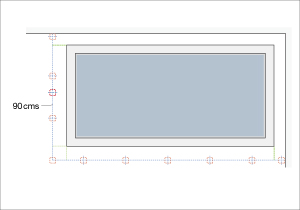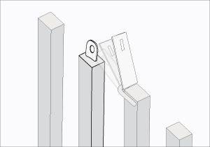 El módulo de la puerta tendrá otro pollo más a 90 cms a eje de su pollo vecino. Esto es para que la puerta quede anclada de un lado y se pueda abatir por el otro extremo.