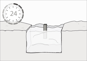 Echar hormigón hasta la mitad de la excavación y meter el ancla dejando una separación de los laterales de 4 cms. Terminar de rellenar el pollo con más hormigón, dejando libres unos 3-4 cms de los fierros del ancla.