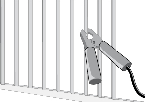 Con la pinza llevar corriente a la reja y asegurarse que la pinza toque directamente la superficie metálica.