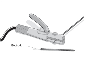 Poner el electrodo en el portaelectrodo, sujetándolo desde la punta.