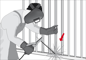 Para soldar no olvide usar la ropa de seguridad indicada. Es muy importante la pechera y los guantes de cuero de descarne, que evitan que la ropa se queme, y la máscara fotosensible que ayuda a ver el punto a soldar, incluso con el destello de luz de la soldadura.