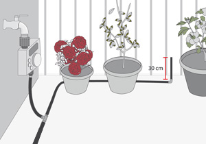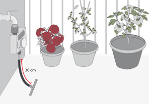 El lugar donde se instale el riego automático debe tener una llave cerca que suministre el agua. No es necesario que esté al lado, ya que con la cañería de polietileno (plansa) se puede hacer el recorrido hasta llegar a las macetas.