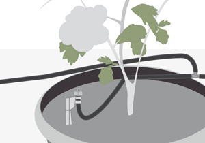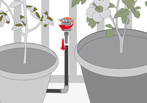 En el extremo del microtubo que llega al macetero poner un microjet, afirmarlo en la estaca y enterrarla en el macetero, dejando la altura correcta para que el microjet riegue la tierra sin mojar en exceso el follaje.