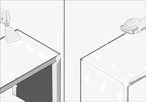 La terminación de mesas se comienza tapando todos los cantos y las puntas con pasta de retape. Una vez seca la pasta se puede lijar.