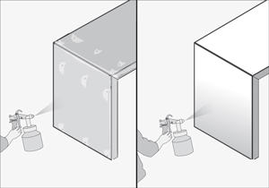 Esta es una pistola que tiene una turbina de aire que expulsa la pintura, pero no en forma pulverizada para evitar una nube de pintura que ensucie, sino que lanza un chorro que según la posición de la boquilla pude transformarse e un abanico vertical, horizontal o uno más delgado para pintar detalles. Para saber cuánto hay que diluir la pintura hay que ver su viscosidad, ya que no puede ser una pintura muy líquida, en algunas ocasiones (dependiendo de la marca) no será necesario diluir, en otra muy poco, es aconsejable no agregar más de un 10% de diluyente.