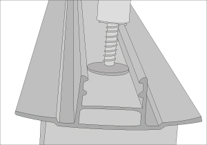Entre cada plancha va un perfil H ensamblable, que a diferencia de los clásicos en “H” facilitan la instalación de los cortes del policarbonato. Cortar el perfil a la medida del largo que se quiere cubrir con el policarbonato. El perfil se separa en una base que corresponde a la pieza hembra donde van los tornillos, y una vez puestas las planchas se cierra con el macho. Para atornillar la parte fija del perfil H se usan tornillos con punta.