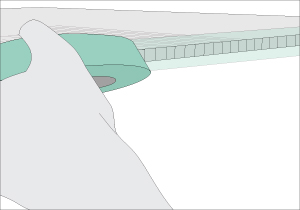 Antes de poner el policarbonato en el perfil hay que sellar el policarbonato por el lado de los alvéolos, la cinta verde va en la parte superior y la gris que es respirable en la parte inferior, esto evitará que se condense humedad en el interior.