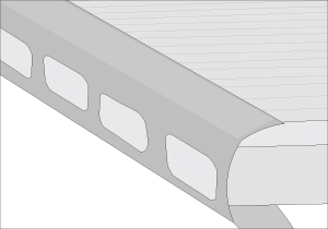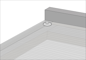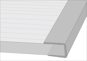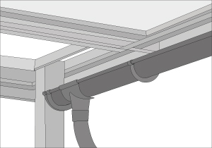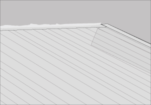 Para evitar que se moje el sistema de riel hay que fijar un perfil cortagotera de acero galvanizado de 0,5mm, que consiste en una lámina de acero doblada que al final tiene una terminación “tipo J” que evita que el agua, producto de su capilaridad, retorne al sistema corredizo y corte la gota, haciendo que caiga en el policarbonato.