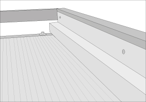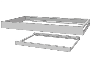Para evitar que la falta de cuadratura o cualquier irregularidad en el cobertizo impida que el riel corra correctamente hay que construir cajones independientes que se pondrán dentro del espacio entre las vigas. El marco se construye de madera, ya que el cobertizo es de madera y es un material que trabaja con el calor y el frío, por lo que si se hiciera de acero trabajaría mecánicamente el cobertizo de madera y no el marco de metal y policarbonato pudiendo hacer demasiada fuerza en el riel. Por eso se usa madera para que se dilaten y contraigan con el calor y el frío en conjunto. La medida del marco dependerá de las dimensiones del cobertizo, pero el marco mayor se hace con pino de 1x6”, en la cara que da hacia la pendiente hay que fijar palos de 1x2” para introducir el marco chico.
