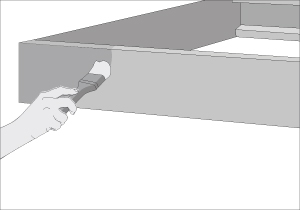Aplicar un protector de madera al cajón que se instalará en el cobertizo.