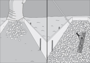 Apisonar el terreno, para que quede compacto y se mantenga el nivel.