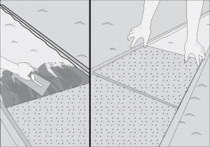 Es importante considerar que los pastelones se deben pegar después que el radier está seco al tacto, como se usó un hormigón de secado rápido esto se logra en un par de horas.