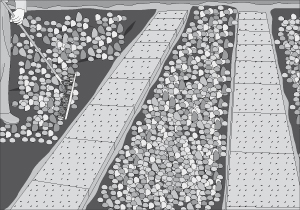 El ripio se diferencia de la gravilla porque es una piedra un poco más grande y con los cantos más redondeados, es la que comúnmente se usa en la construcción. Por cada huella de 50x4.60 se necesitan 6 sacos de ripio.