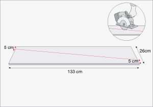 Los 2 laterales saldrán del trozo que mide 133 x 26 cm, pero hay que cortarlo marcando la pendiente, ya que son ellos y las costillas los que darán la inclinación a la rampa.