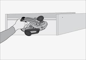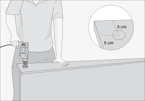 Para mover la rampa hay que hacer unas asas en cada lateral, lo primero es realizar una perforación con broca copa de 38 mm a 5 cm desde la equina.