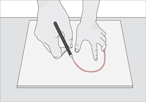 Con un lápiz de pasta hacer dibujos en la bandeja de poliestireno. La punta del lápiz no debe traspasar el material, sólo hacer surcos, ya que serán ellos los que no se imprimirán en el grabado