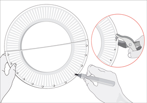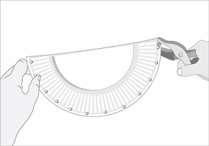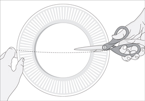 Presentar la mitad perforada sobre el plato entero y traspasar los agujeros con un plumón. Hacer las perforaciones en las marcadas pintadas.