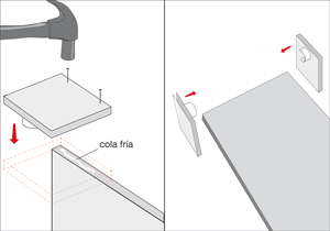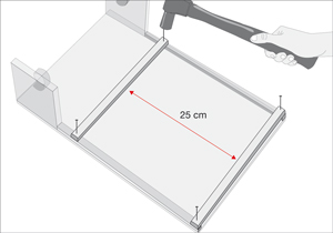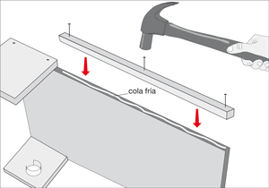 Clavar los 2 cubrejuntas sobre los junquillos, uno va en el borde del papelógrafo, y otro dejando 25 cm libres hacia arriba, ellos servirán para pasar el papel y que no se levante.