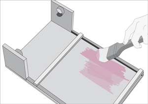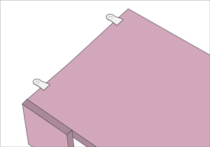 Con los 3 trozos de MDF se formará la caja del papelógrafo. Se fijan los trozos de 10 cm en el borde superior, con los soportes instalados mirando hacia el interior. Se usa cola fría y puntas.