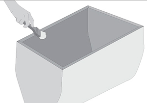 Si el cajón que se va a usar para cultivar las hierbas es completamente cerrado hay que protegerlo por el interior con un imprimante asfáltico que ayudará a preservar la madera para que no se deteriore con la humedad. Este producto se aplica con brocha, hay que dejarlo secar muy bien antes de hacer la plantación.