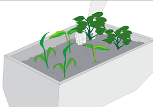 Dividir el cajón en 3 zonas y plantar las hierbas de pares, agrupando las especies por propiedades. • Regar muy bien la tierra.