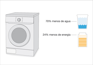 Una lavadora de bajo consumo ahorra hasta un 70% de agua y un 24% de energía, siempre que sea utilizada a plena carga y con programas económicos.