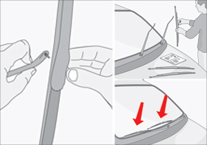 Seguir las instrucciones de instalación que vienen en el envase de las plumillas, hasta dejarlas trabadas firmemente.