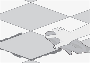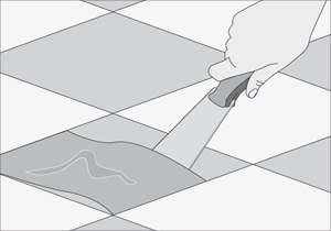 Aspirar y limpiar el suelo, el que debe estar nivelado y sin protuberancias ya que cualquier imperfección se notará a través de la palmeta.