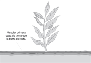Para prevenir echar en la base de la planta la borra del café en grano y mezclar con la primera capa de tierra.