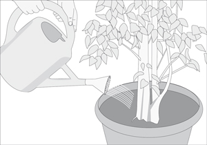 Se riegan cuidadosamente las plantas que están en maceteros, sin encharcarlas ni mojar sus hojas. Se usan regaderas.