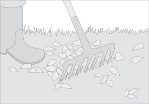 En este mes el pasto se llena de hojas secas: se rastrilla y se recogen en cuanto caigan; más aún si están húmedas, pues con la "respiración" de las hojas al descomponerse sobre el césped –que también respira –se retiene humedad, y -si no hay una adecuada ventilación- se crea el ambiente ideal para que prosperen los hongos.