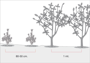 La distancia de plantación promedio de un árbol no debe ser menor de 1 m. Si el suelo es pobre en nutrientes, los árboles nunca desarrollarán todo su potencial de crecimiento, por lo tanto pueden situarse a menor distancia. En caso contrario, la separación debe ser mayor.