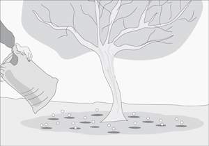 Aplicar el fertilizante en pequeños agujeros excavados bajo la copa de los ejemplares adultos de árboles y arbustos.