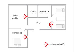 La mejor forma de conseguir una detección efectiva y temprana de CO es instalando una alarma en cada uno de los diferentes niveles y áreas de una casa o departamento.