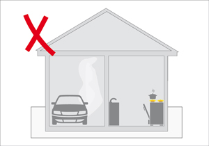 Nunca dejar funcionando un automóvil en un garaje que esté conectado con la casa y por ningún motivo permitir que el humo del escape del motor entre en ella. Mantener el garaje siempre bien ventilado y no confiar en que el portón está abierto.
