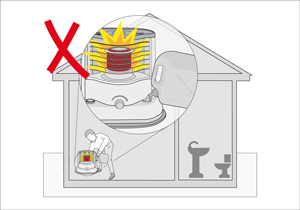 Si se va a temperar un ambiente cerrado con una estufa sin tiro forzado, dejarla sólo un rato en el recinto y después sacarla.