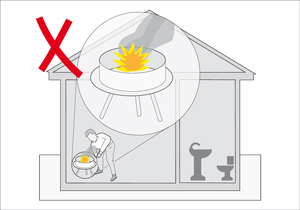 Nunca encender carbón al interior de un recinto cerrado (casa, garaje, carpa, etc.) ni utilizar equipos de combustión portátiles para acampar dentro del hogar, garaje, vehículo o carpa.