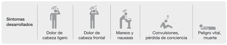 La siguiente tabla muestra los síntomas que experimenta un adulto saludable frente a diferentes niveles de inhalación de CO.