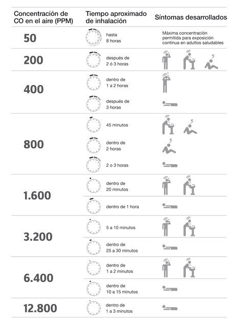 No ignore estas señales, recuerde que tanto los bajos niveles como las altas concentraciones de CO pueden causar serios problemas