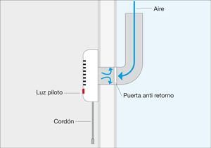 La puerta anti retorno evita la entrada de aire desde el exterior y las fugas de calefacción cuando el extractor no está en funcionamiento. Se abre por la presión del aire.