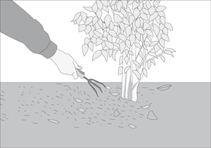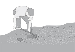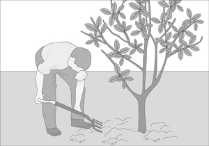 Horquetear la tierra para airearla y favorecer la absorción del fertilizante.