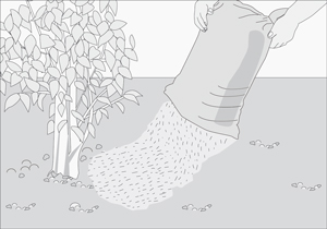 Esparcir al voleo gránulos de un fertilizante rico en potasio.