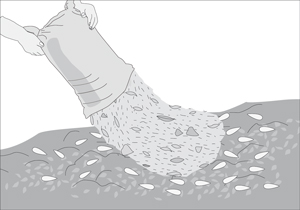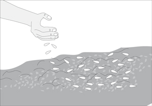 Tirar las semillas al voleo, asegurándose que queden bien repartidas en el macizo.