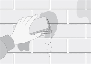 Mojar el cepillo de cerdas de nylon en la solución de agua + limpiador y pasarlo por el ladrillo.