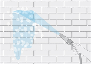 Con la hidrolavadora, la manguera o un pulverizador en su modo más fuerte enjuagar los ladrillos y sacar todo el producto químico con que se lavó.