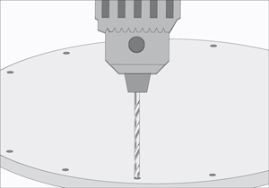 Con el taladro y la broca para madera perforar en cada una de estas separaciones 1 agujero.