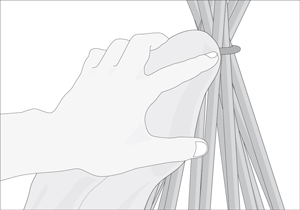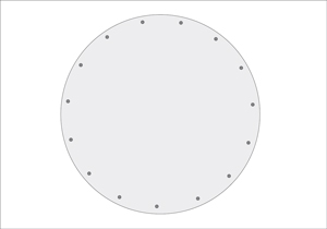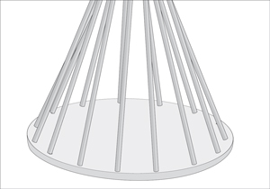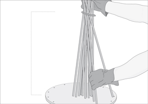 Los 15 fierros de 12 mm. de diámetro ponerlos al centro del círculo de madera y distribuirlos en los agujeros.