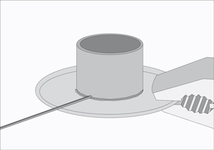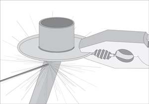 El pinchazo de soldadura debe darse entre el platillo y la punta del fierro.